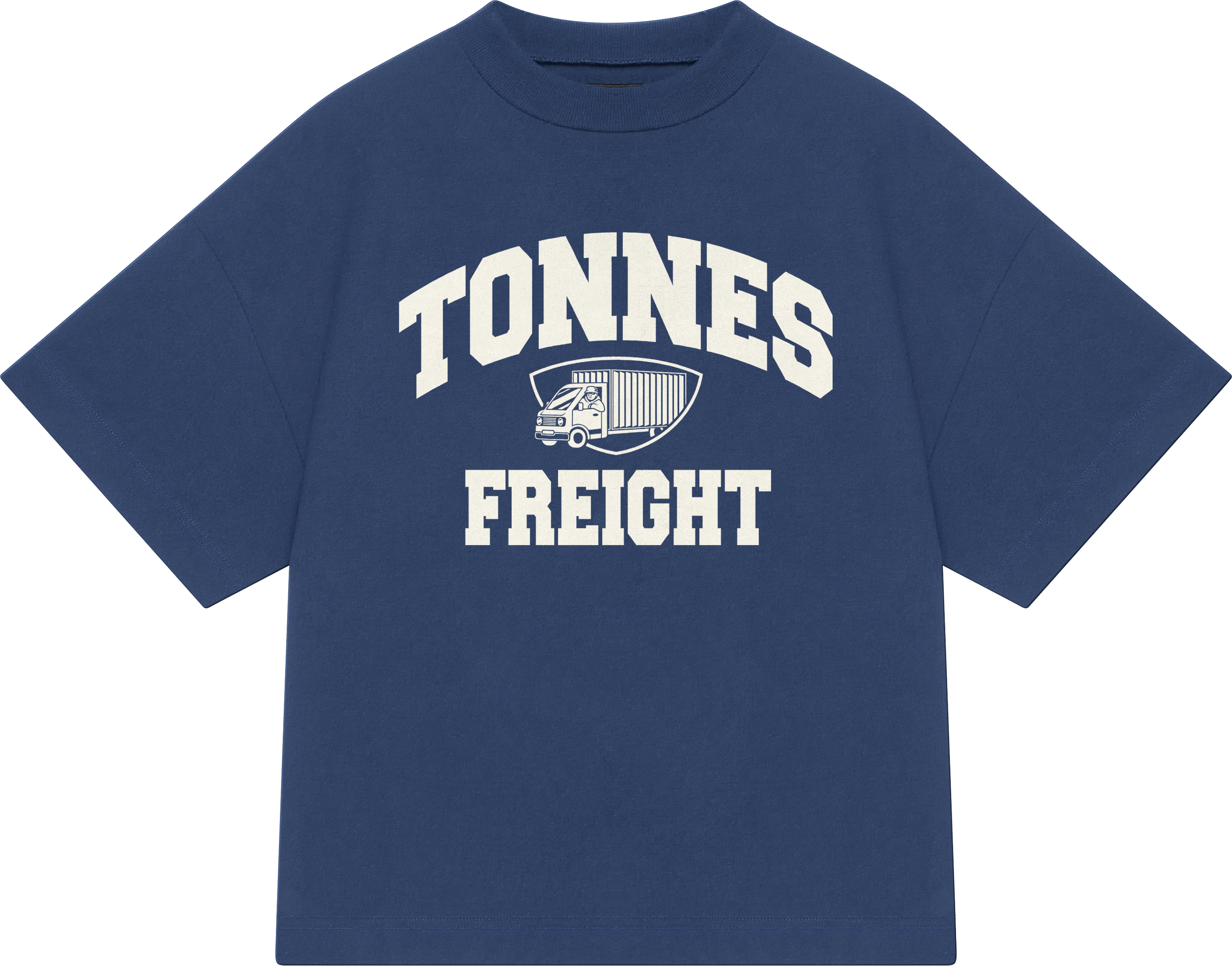 Varsity style TONNES FREIGHT t-shirt design & mockup
